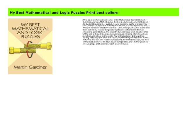 My Best Mathematical And Logic Puzzles Print Best Sellers from image.slidesharecdn.com Logic puzzles (also known as "logic grid puzzles") require the solver to deduce the relationships between different people, places and things based on a limited number of clues given in the puzzle. Here's a brand new set of worksheets to teach critical math skills: There are 9 puzzles varying from easy to intermediate to difficult. The files are grouped by difficulty (very easy, easy and medium) and are a great activity for all ages. Download and play them by yourself or give it to kids to play at home or at school. They are also available to play online. Download and play for free our printable logic grid puzzles (pdf). This puzzle may not be.
